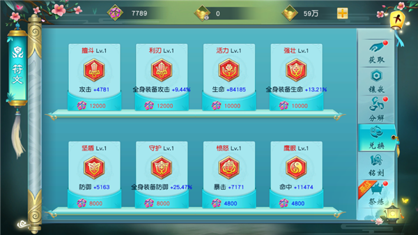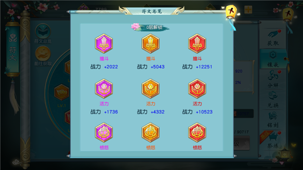 “符文觉醒”、“符文铭刻”以及通关符文塔都会获得【符文】、【符文精华】,同时分解其他符文也可以获得【符文精华】。通过消耗符文精华可以对符文等级进行提升,获得增强属性!