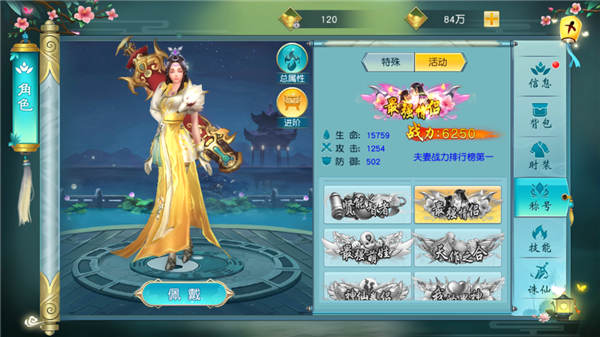 在【称号】页面可以查看游戏内全部称号以及人物已获得的称号。