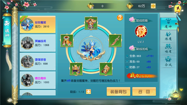每位魔神都附带有对应的魔神助战技能,如增加防御百分比、攻击力百分比等。